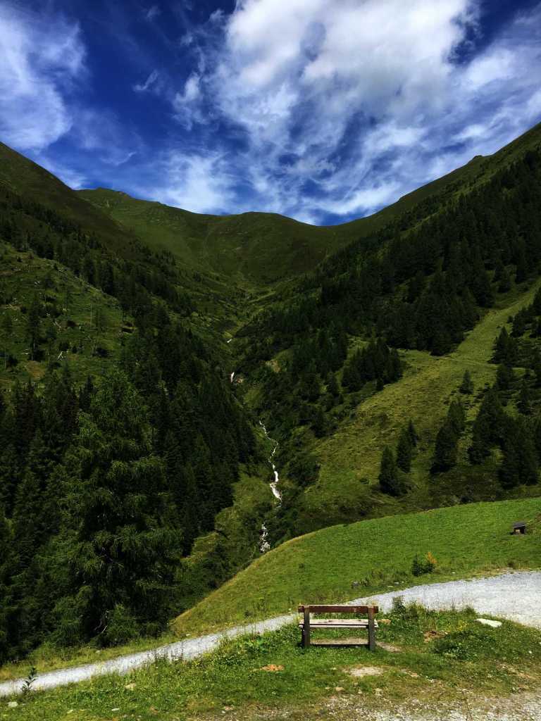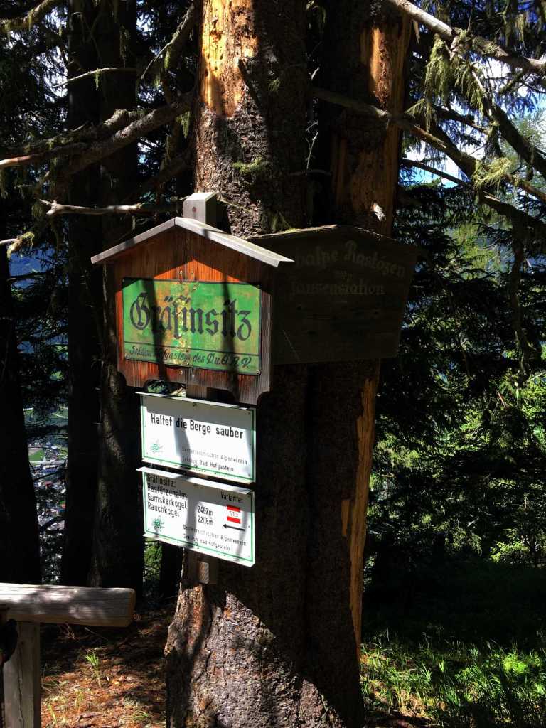 Gestartet sind wir am Annencafé. Die erste Etappe führt über einen Forstweg hoch zur Rastötzenalm, dabei kann man aber immer wieder auf ein paar wunderbaren Steigen durch den Wald abkürzen. Eine dieser Abkürzungen führt uns am Gräfinsitz vorbei, einem Aussichtspunkt, den schon die Gemahlin von Erzherzog Johann zu schätzen wusste. Nach ca. 1 3/4 Stunden haben wir dann die Rastötzenalm auf 1.740 m erreicht. Hier lohnt sich eine erste kleine Rast zur Stärkung.