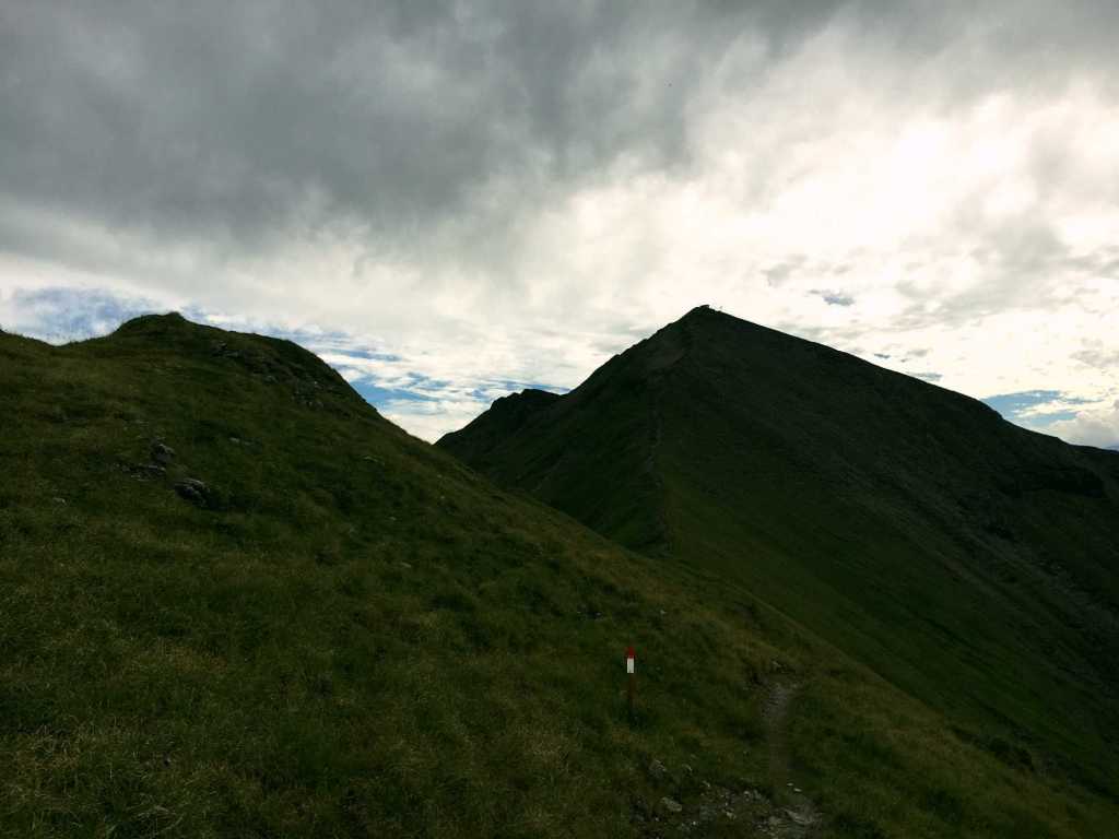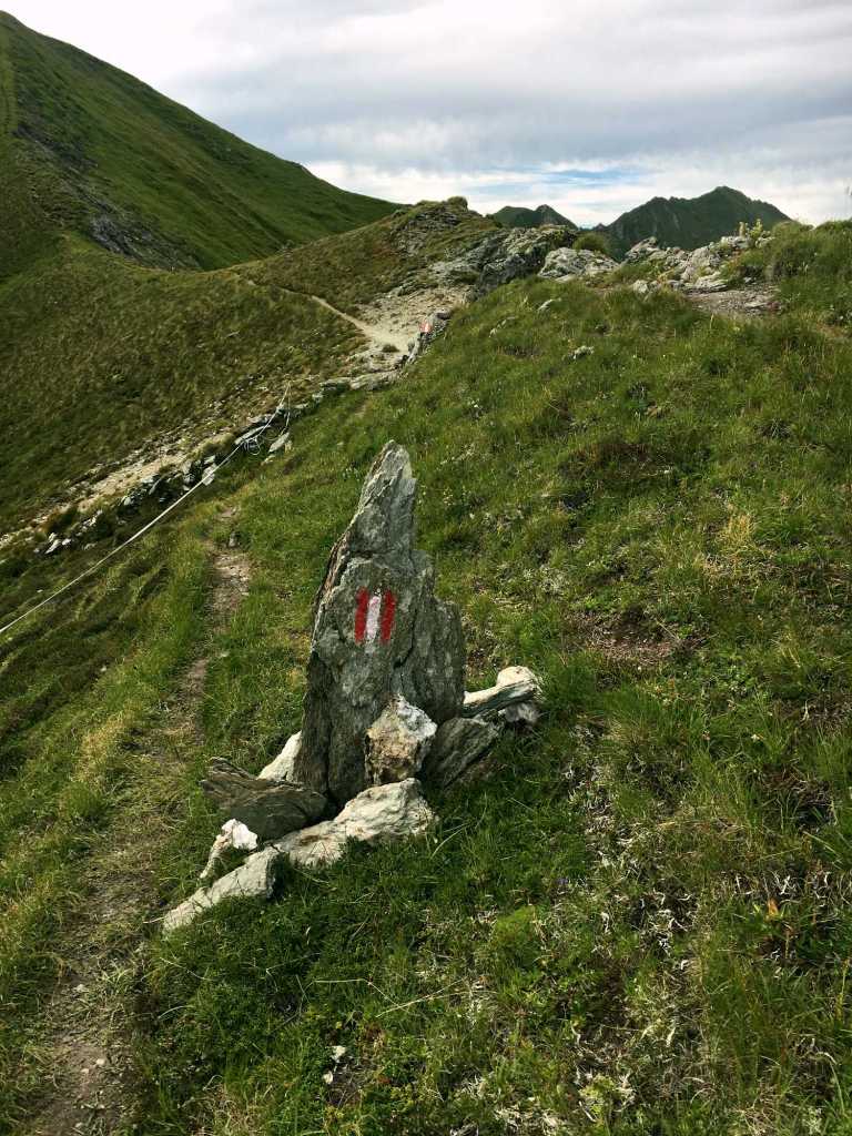 Nach einer kurzen Regenerations-Pause nehmen wir das letzte Stück Aufstieg in Angriff. Aber zuerst geht es (gemeinerweise) erst einmal wieder bergab, bevor es in einem letzten steilen Stück das Tagesziel erreicht haben: den Gamskarkogel und die Gamskarkogelhütte auf 2.467 m.