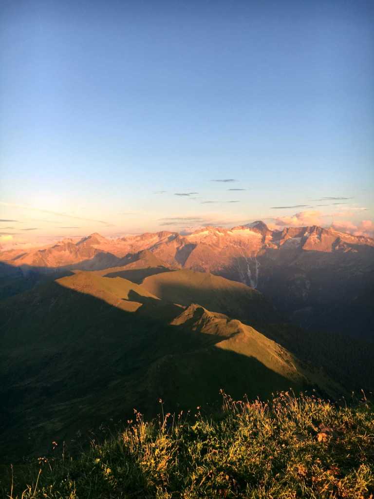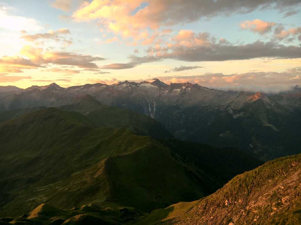 Der Gamskarkogel ist mit 2.467 m der höchste Grasberg Europas, die sich direkt auf dem Gipfel gebaute Gamskarkogelhütte ist eine der ältesten, errichteten Schutzhütten. Die Aussicht atemberaubend, ein 360° Blick zu den Eisriesen im Nationalpark Hohe Tauern, zum Steinerne Meer, zum Dachstein bis in den Salzburger Lungau hinein. Der Gamskarkogel gehört zur Ankogelgruppe und befindet sich in der Nähe von Bad Hofgastein / Österreich.