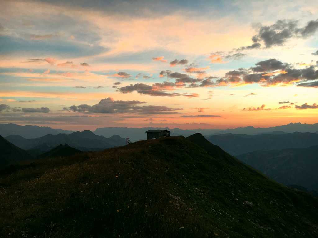 Eine wunderbare Wochenend-Tour, die gleich mehrere Highlights bietet: 360° Rundumblick, Sonnenuntergang, Sonnenaufgang und einen total sympathischen, dem Schnaps etwas zugetanen Hüttenwirt 😉