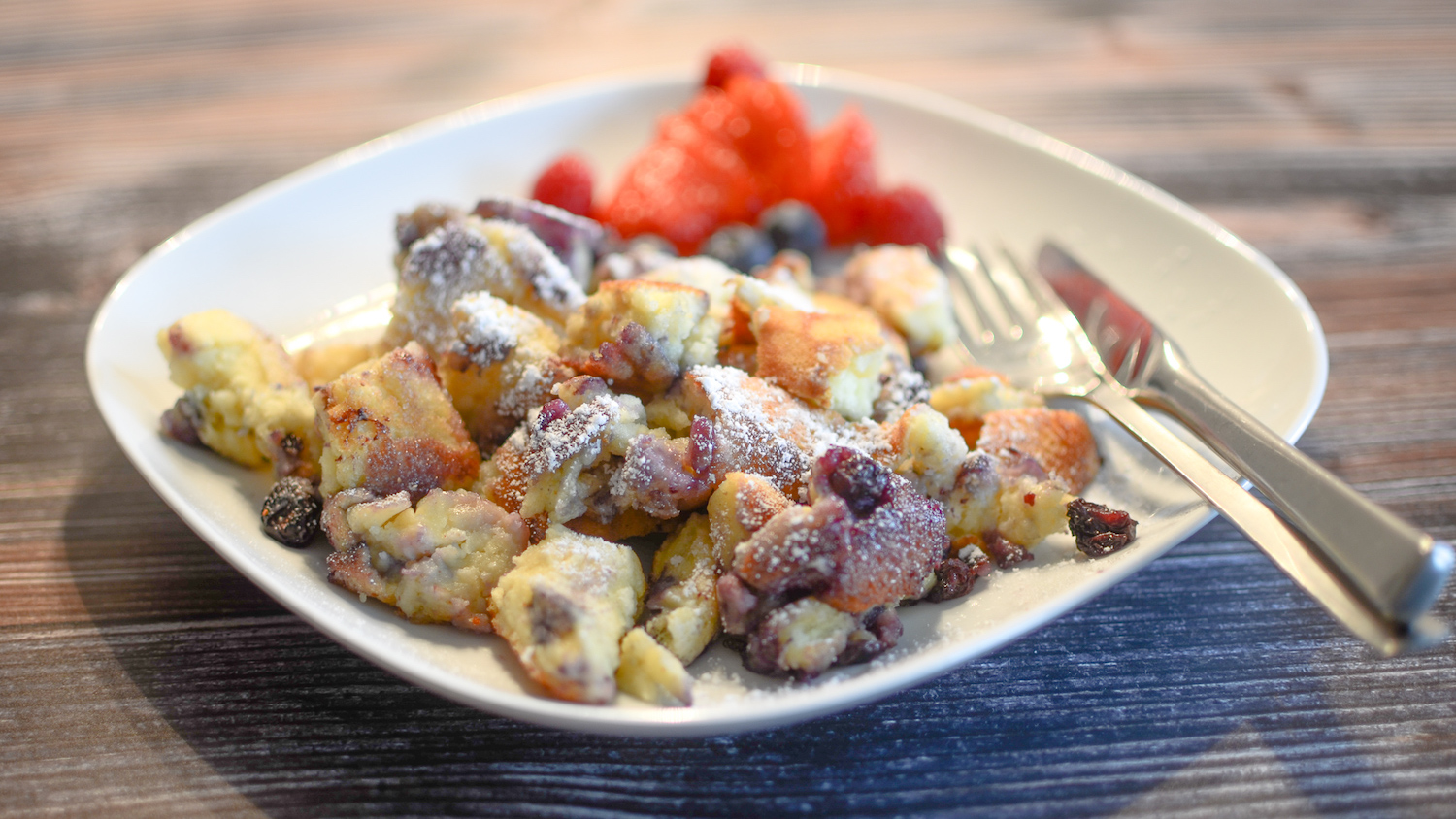 Et voilà, fertig ist des Kaiserschmarrns mit Blaubeeren.
