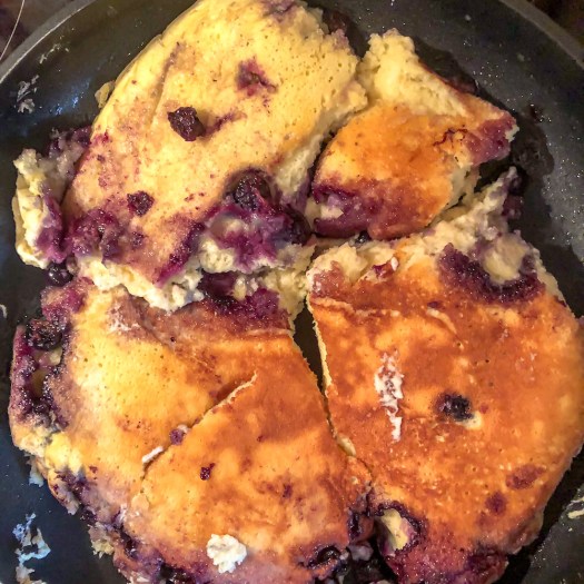 Geht schnell und ist mega lecker. Dazu passt am besten Zwetschgenröster, Apfelmus oder wie hier Blaubeeren.